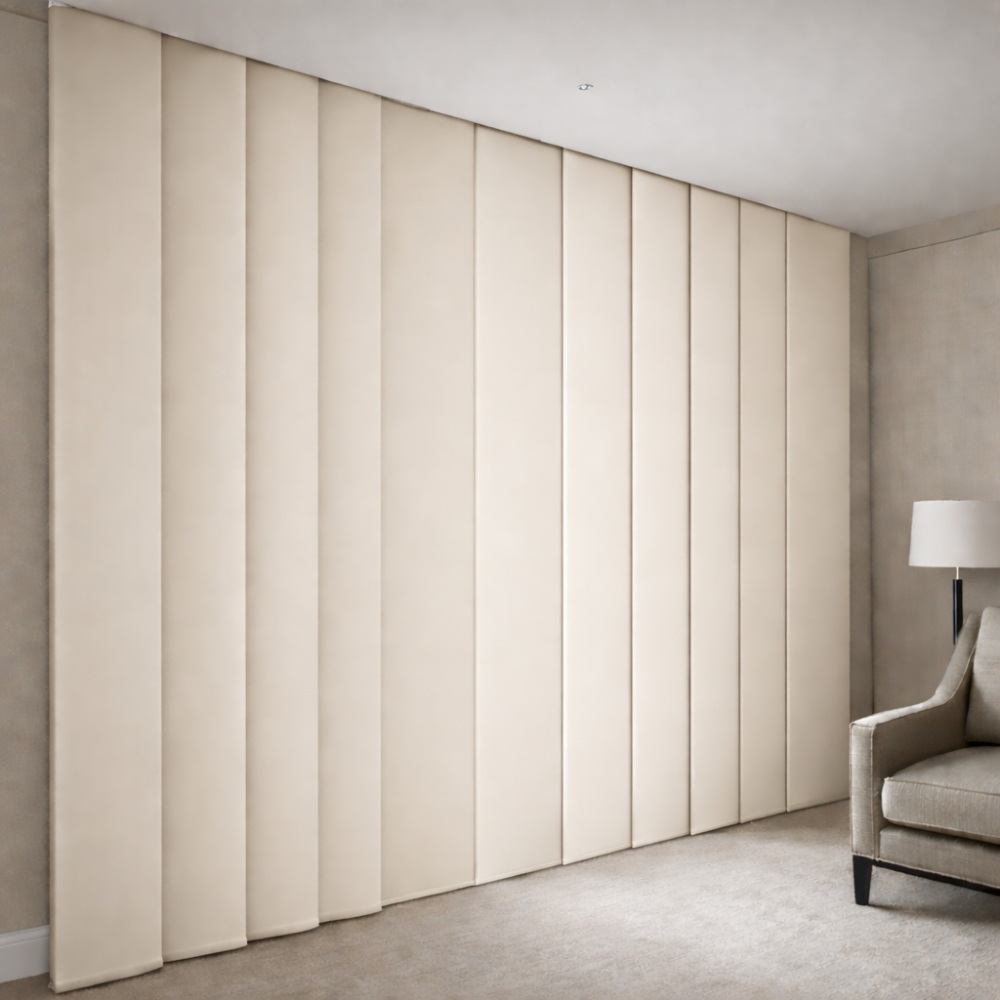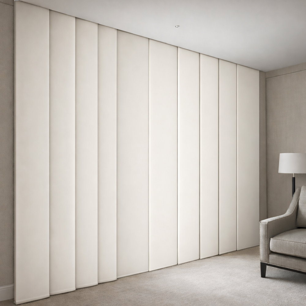 Produzida sob medida, a Persiana Painel da DecorFlex Interiores se adapta perfeitamente ao seu projeto, garantindo alinhamento preciso, caimento impecável e acabamento superior.