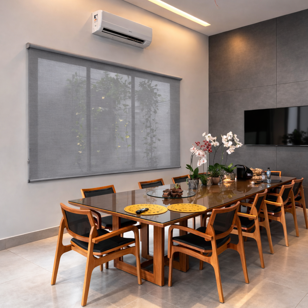 Com design minimalista e contemporâneo, a persiana rolô tela solar valoriza a arquitetura do espaço sem pesar na decoração. Seu acabamento clean permite fácil combinação com diferentes estilos, criando ambientes elegantes, leves e visualmente organizados. Além da estética sofisticada, proporciona praticidade no controle da luminosidade conforme a necessidade do momento.